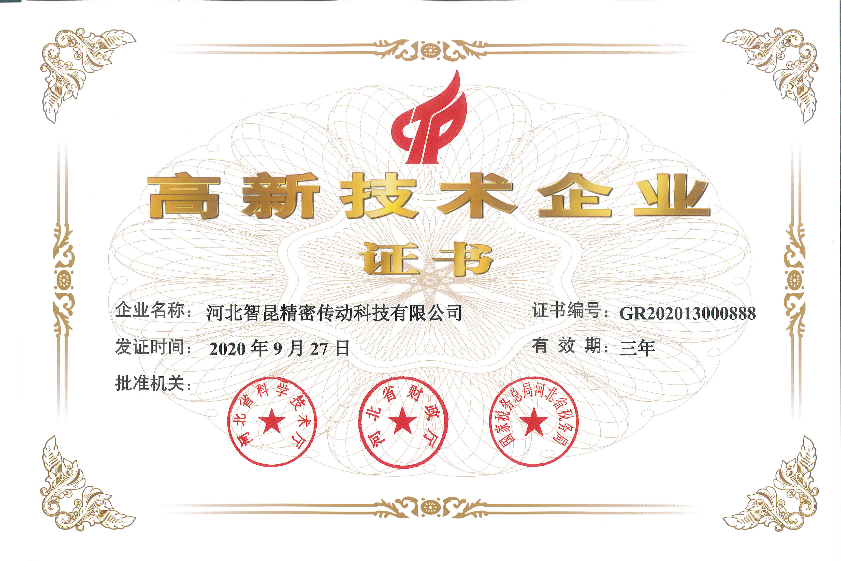 高新技術(shù)企業(yè)證書(shū)
