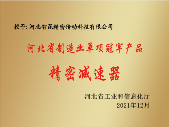 智昆科技-“精密減速器”入選第三批河北省制造業(yè)單項(xiàng)冠軍產(chǎn)品