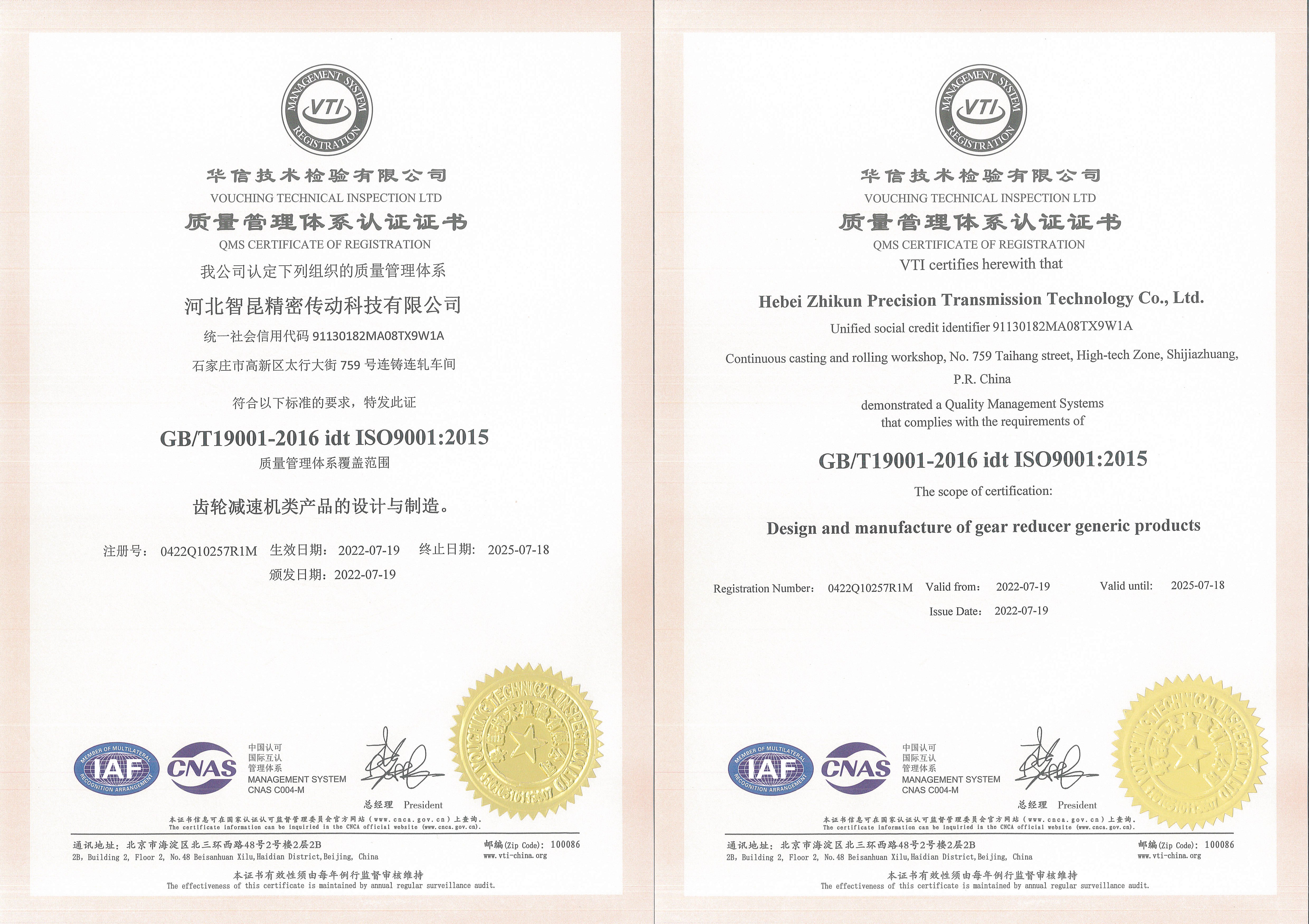 質(zhì)量管理體系認(rèn)證證書(shū)